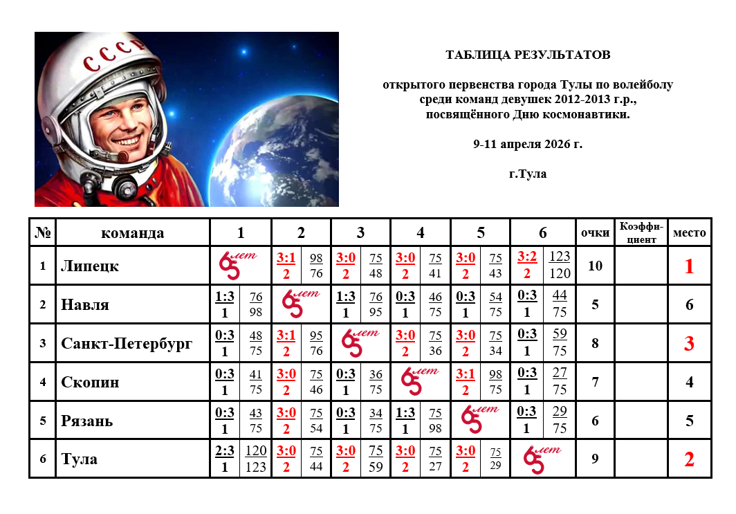 С 9 по 11 апреля 2026 года в Туле состоялось открытое первенство города по волейболу среди девушек 2012–2013 годов рождения. Турнир был посвящён Дню космонавтики, что добавило соревнованиям особого символизма: юные спортсменки, словно будущие покорительницы космоса, стремились к самым высоким вершинам.